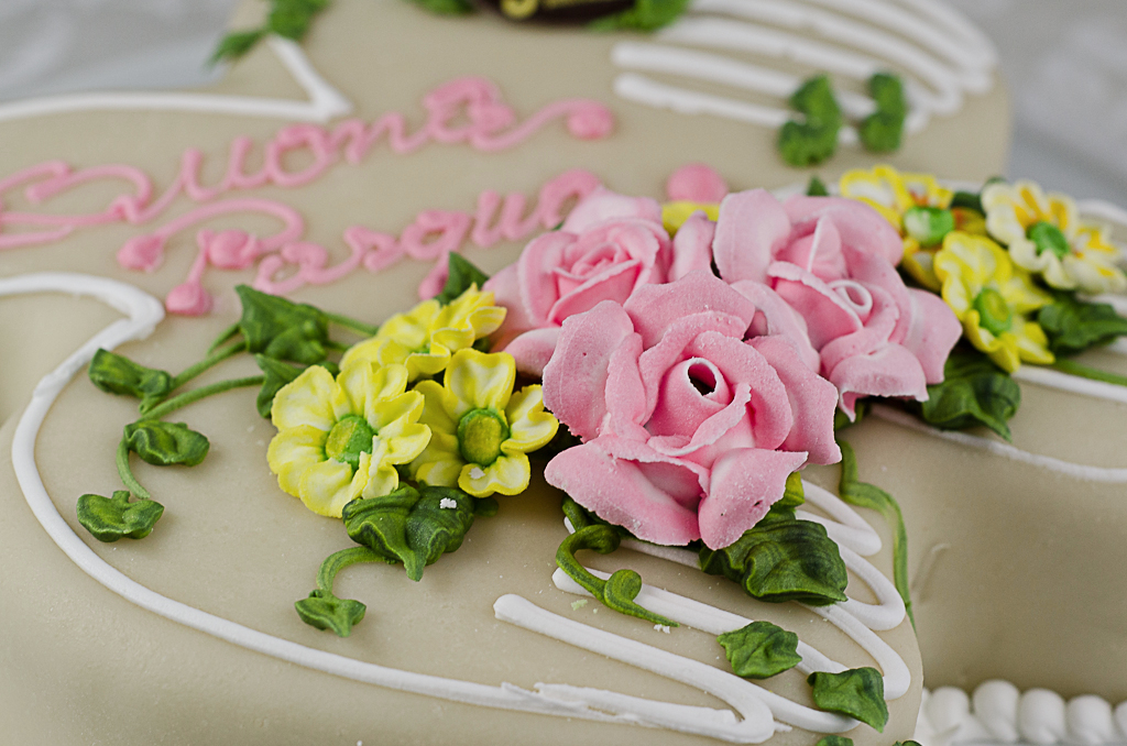 La colomba si veste di nuovo con la nostra dolce glassa! Si tratta di un particolare dolce realizzato con un soffice pan di spagna, bagnato con un leggero liquore all’arancia e farcito con una delicata crema al burro alla nocciola. Il tutto viene poi rivestito con un sottile strato di Marzapane decorato con ghiaccia reale.