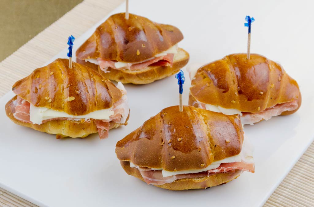 Nostra specialità realizzata con dei cornettini di soffice pasta lievitata al formaggio e sesamo, farcita con maionese, Speck ed emmenthal svizzero.