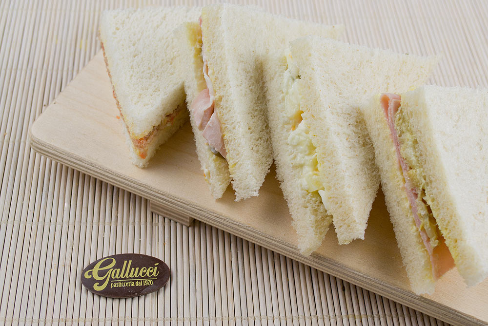 Soffice pancarrè spalmato di ottima maionese e farcito con: Insalata di funghi – insalata russa – prosciutto cotto e sottiletta – insalata di tonno